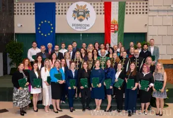 Átvették oklevelüket a Debreceni Egyetem Gazdaságtudományi Karának első ESG tanácsadói részképzésén végzett hallgatók. A GTK 2024 decemberében indított képzésén 76-an szereztek ESG-tanácsadói oklevelet. A tanúsítványokat ünnepélyes keretek között adták át szombaton a Böszörményi úti campus főépületének aulájában.